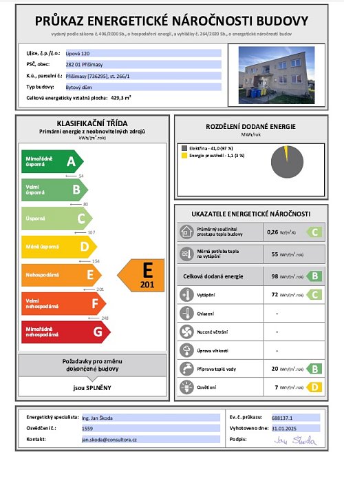 Přišimasy jsou malá a klidná obec, kde se lidé znají jménem. Dům v ulici Lipová 120 má pouze čtyři byty, takže zde panuje opravdová pohoda a přátelská atmosféra.