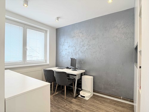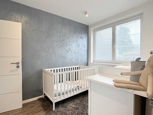 Pracovna s dětským pokojem je průchozí, ložnice je samostatná a nabízí klid pro odpočinek.