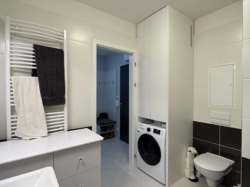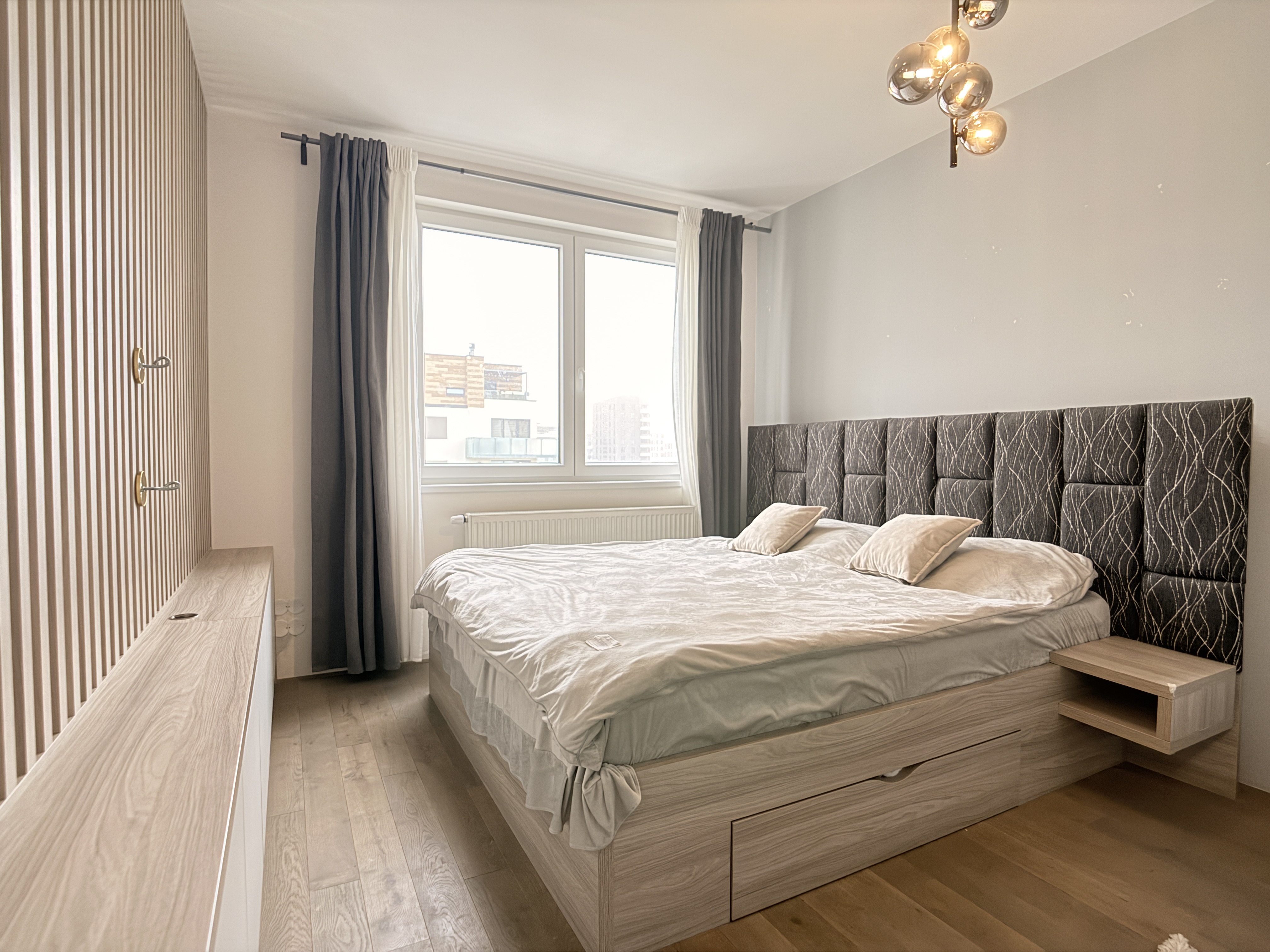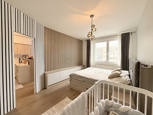 Byt nabízí kompletně zařízený, funkční a nadčasový domov v klidné moderní čtvrti s rychlým spojením do centra. Není potřeba dalších investic ani časově náročných úprav.