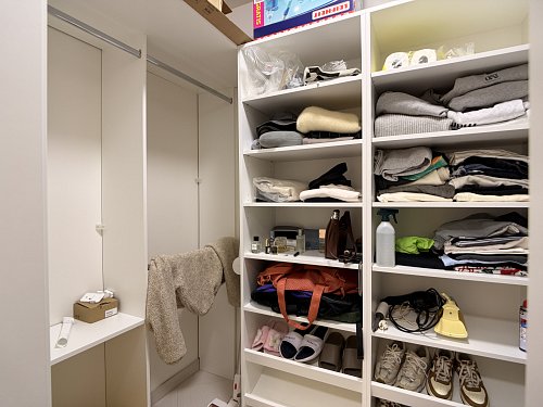 Uzavřená skříň pro pračku a sušičku s policovým systémem