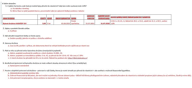 15 000 Kč – poplatek v případě převodu do osobního vlastnictví