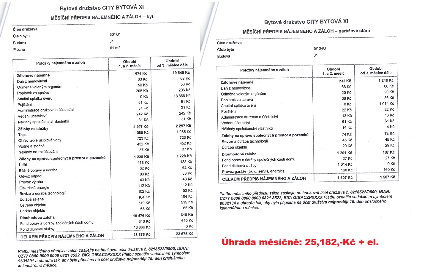 Splátka úvěru (byt + garáž): 19 880 Kč