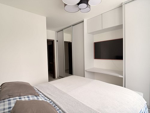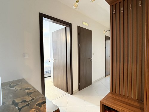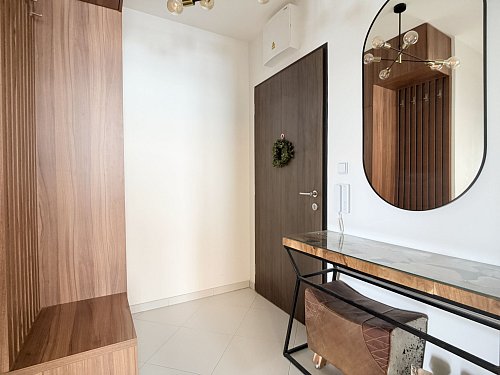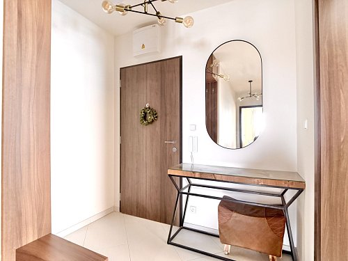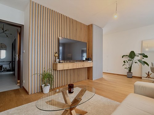 Byt prošel kompletním návrhem interiéru od profesionála. Maximální úložné prostory, zároveň však zachovaný vzdušný a čistý design. Perfektní kombinace funkčnosti a estetiky.