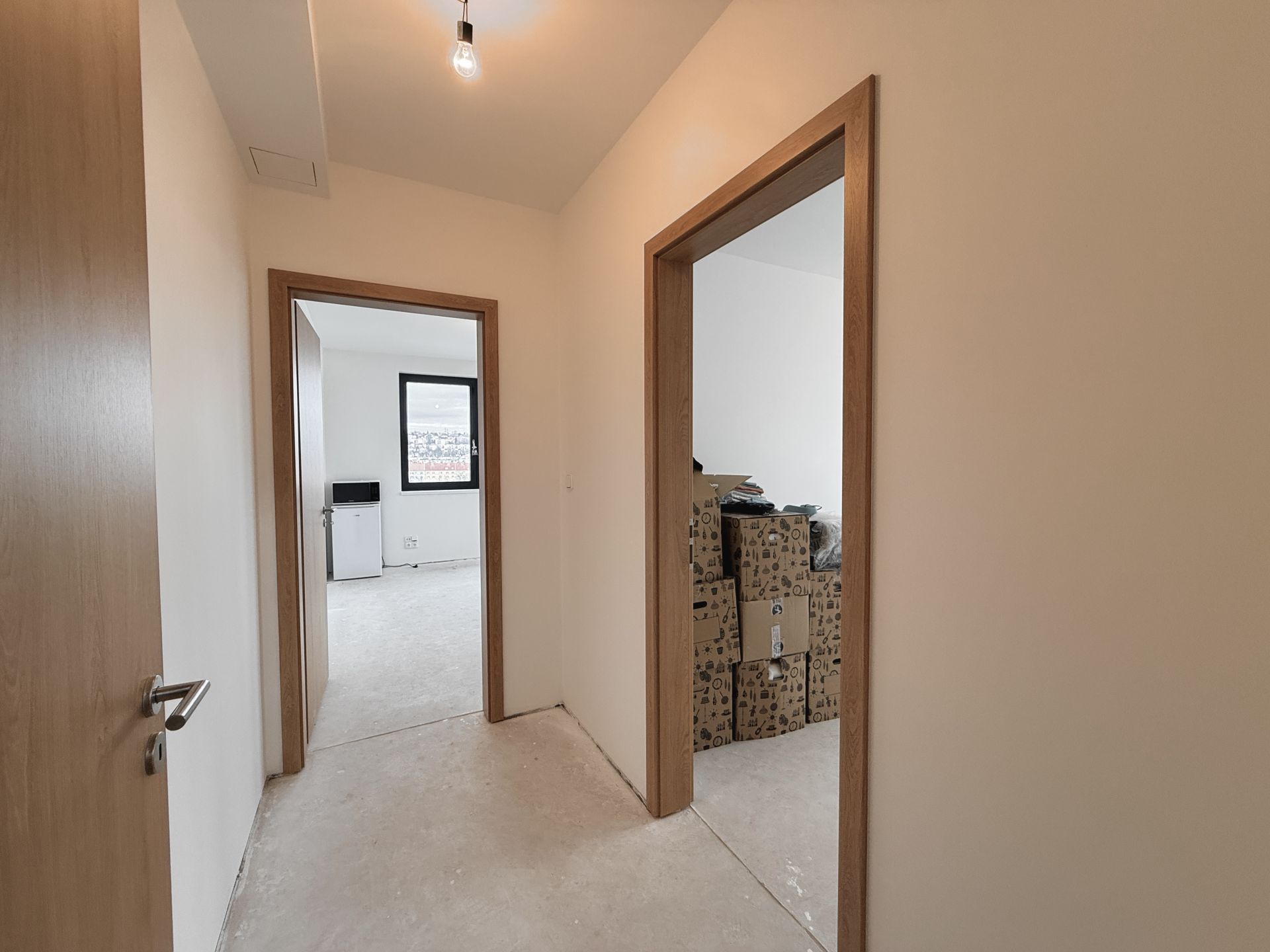 Byt je ve stavu před dokončením interiéru, což umožňuje novému majiteli dokončit jej plně dle vlastního vkusu. Technologické vybavení zahrnuje: