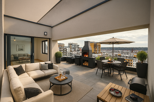 klienty, kteří ocení možnost dvou velkých teras a přes 80 m² venkovního prostoru