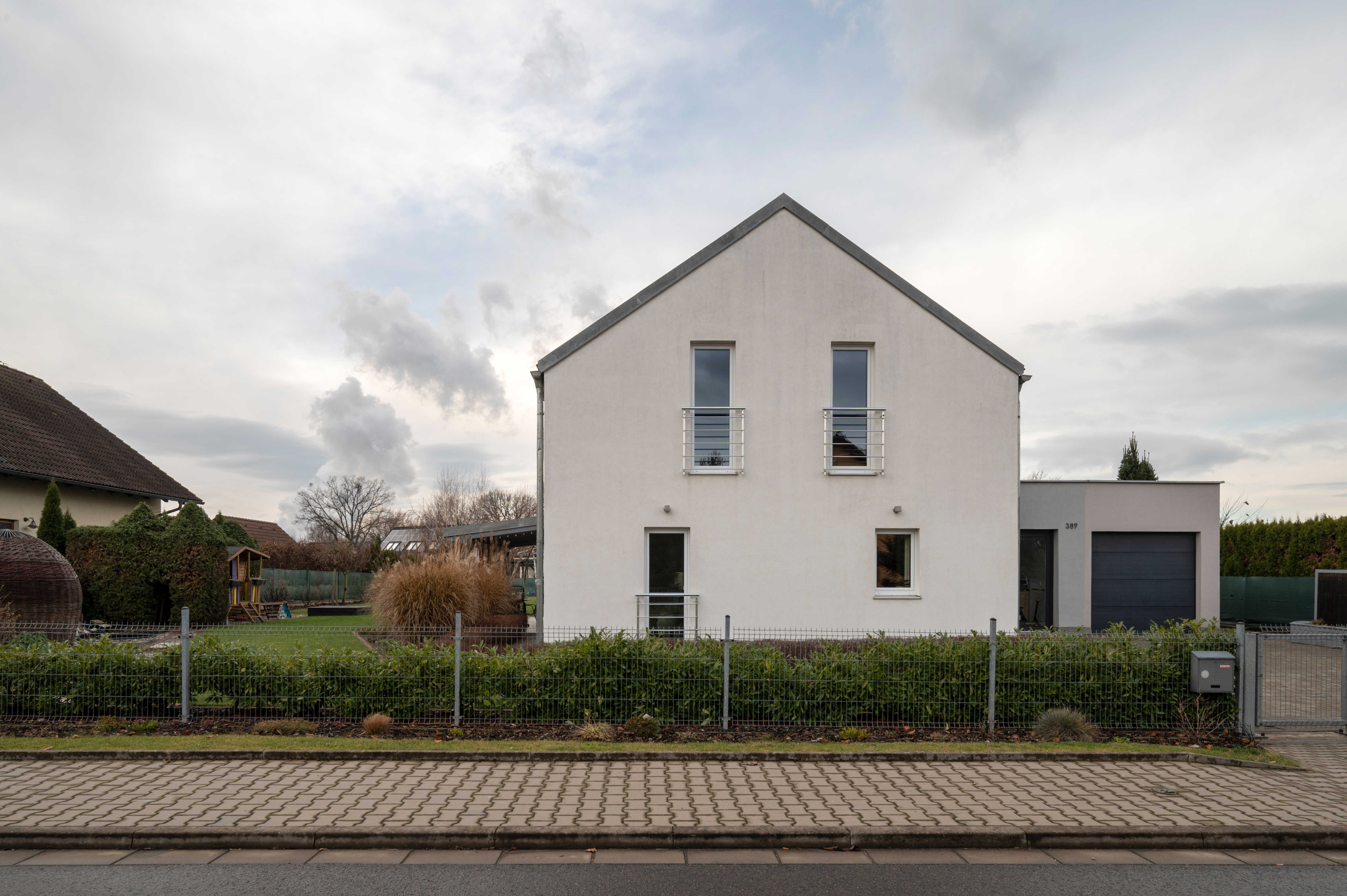 velká garáž + dlážděné parkování pro další dvě auta