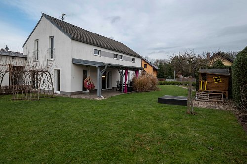 Najít dům, který skutečně drží krok s rytmem rodiny, je vzácnost. Tady máte pocit, že architekt i majitelé přemýšleli několik kroků dopředu: od světla a prostornosti, přes funkční dispozici až po zahradu, která se stane centrem života. Pokud hledáte místo, kde se bydlí krásně, pohodlně a dlouhodobě bez starostí, tento dům vám nabídne přesně to – a ještě mnohem víc.