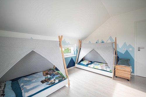 hlavní ložnici s vlastním zázemím a krbem, pro absolutní soukromí rodičů