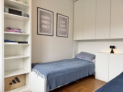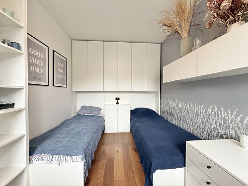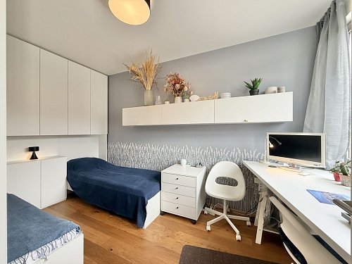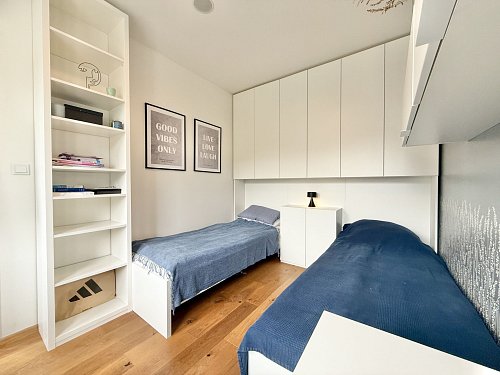 Byt vás nadchne velkorysou kuchyňskou linkou se spotřebiči (bez myčky), dubovými podlahami, designovými dveřmi od společnosti Sapeli se zapuštěnými panty a dvojicí klimatizačních jednotek v obou ložnicích. Světlý a vzdušný byt je připravený k okamžitému nastěhování – stačí se jen přestěhovat a začít bydlet.
