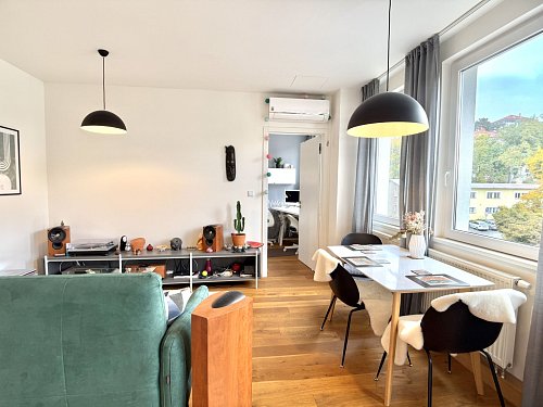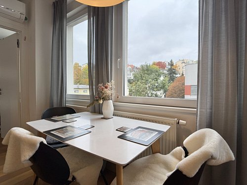 Hledáte světlý, moderní a zařízený byt, který je připravený k okamžitému nastěhování a nabízí pohodlí městského života v klidné lokalitě? Tento byt 3+kk o ploše 61 m² s prostornou střešní terasou 25 m², venkovním parkovacím stáním a vlastním sklepem, ve 4. patře zrekonstruovaného domu s recepcí 24/7 na adrese Perucká 5 je přesně pro vás.